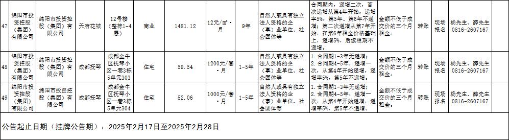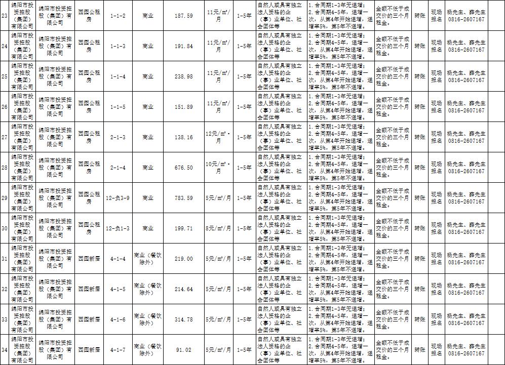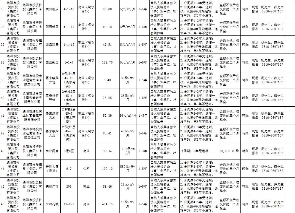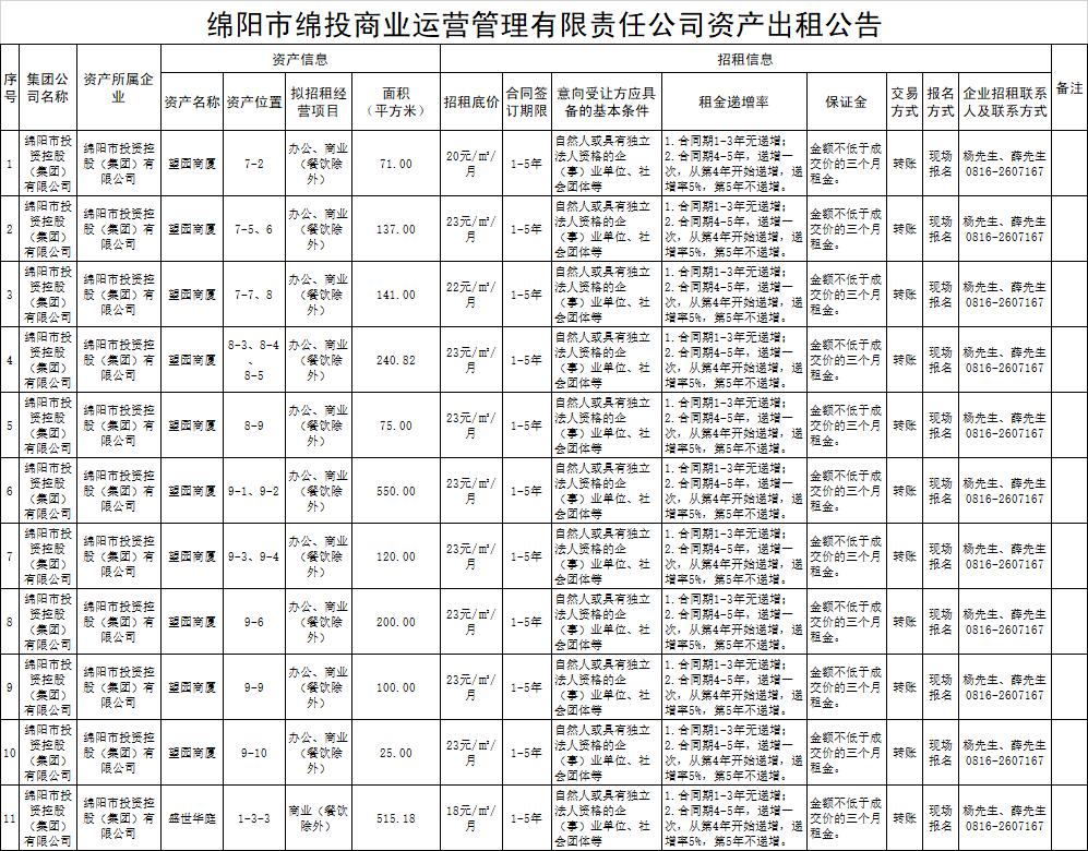 绵阳市PA真人官网商业运营管理有限责任公司资产出租公告