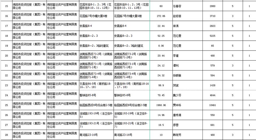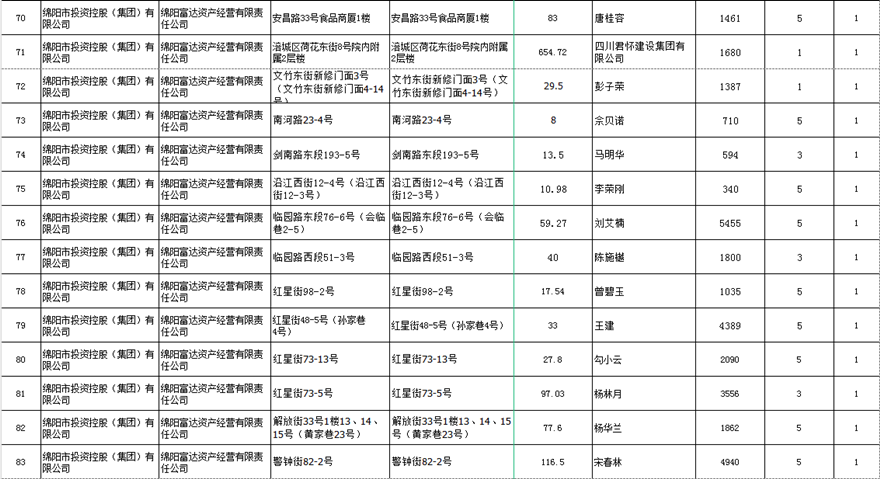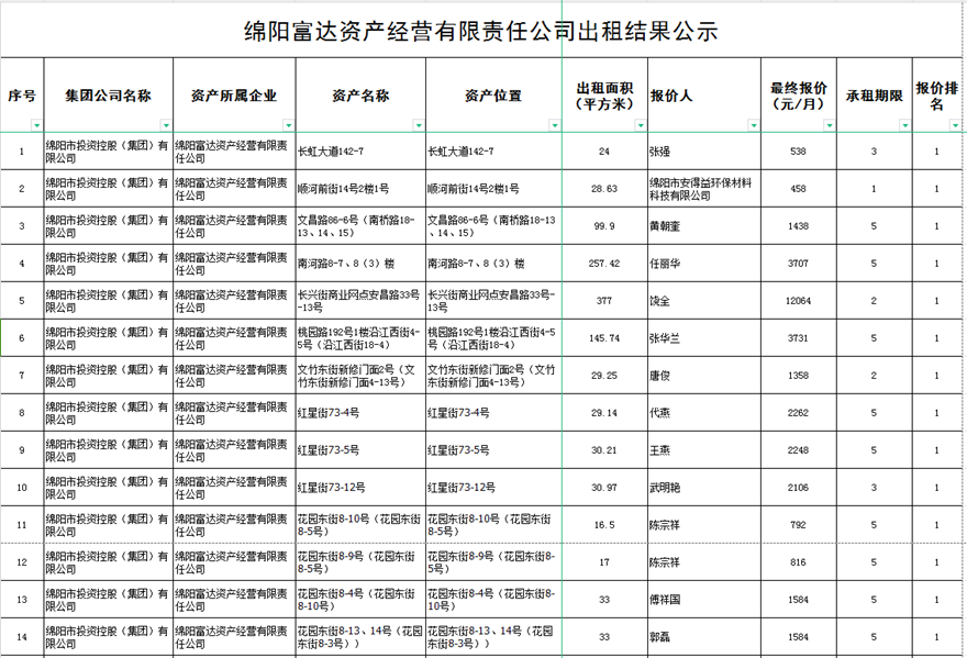 绵阳富达资产经营有限责任公司出租结果公示