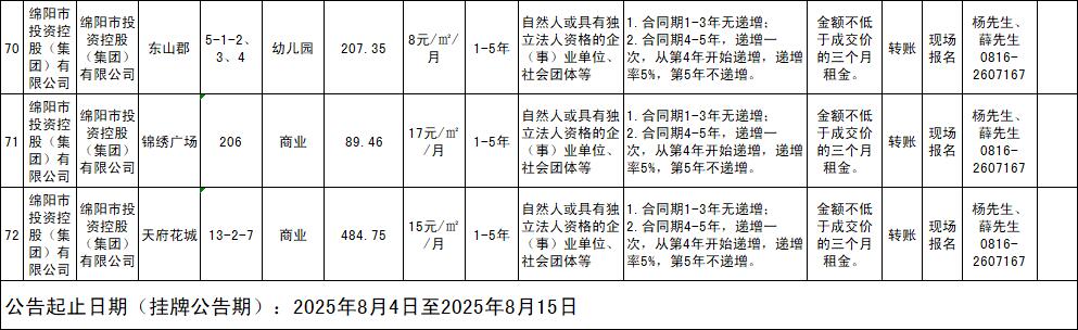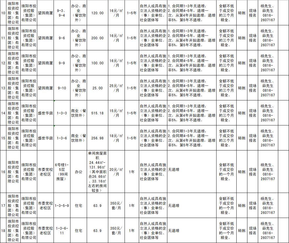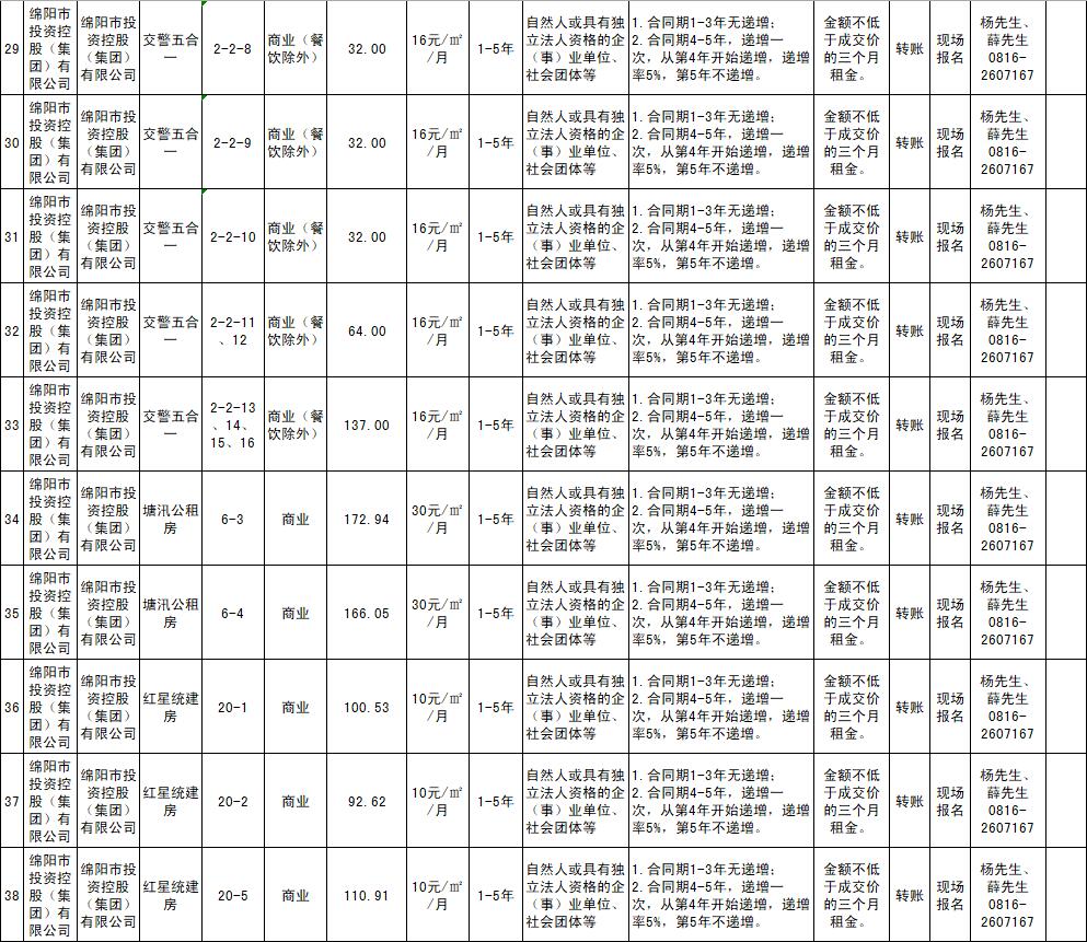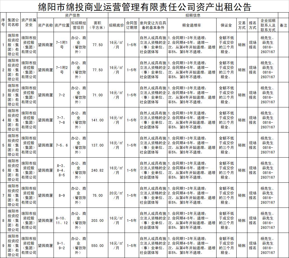 绵阳市PA真人官网商业运营管理有限责任公司资产出租公告