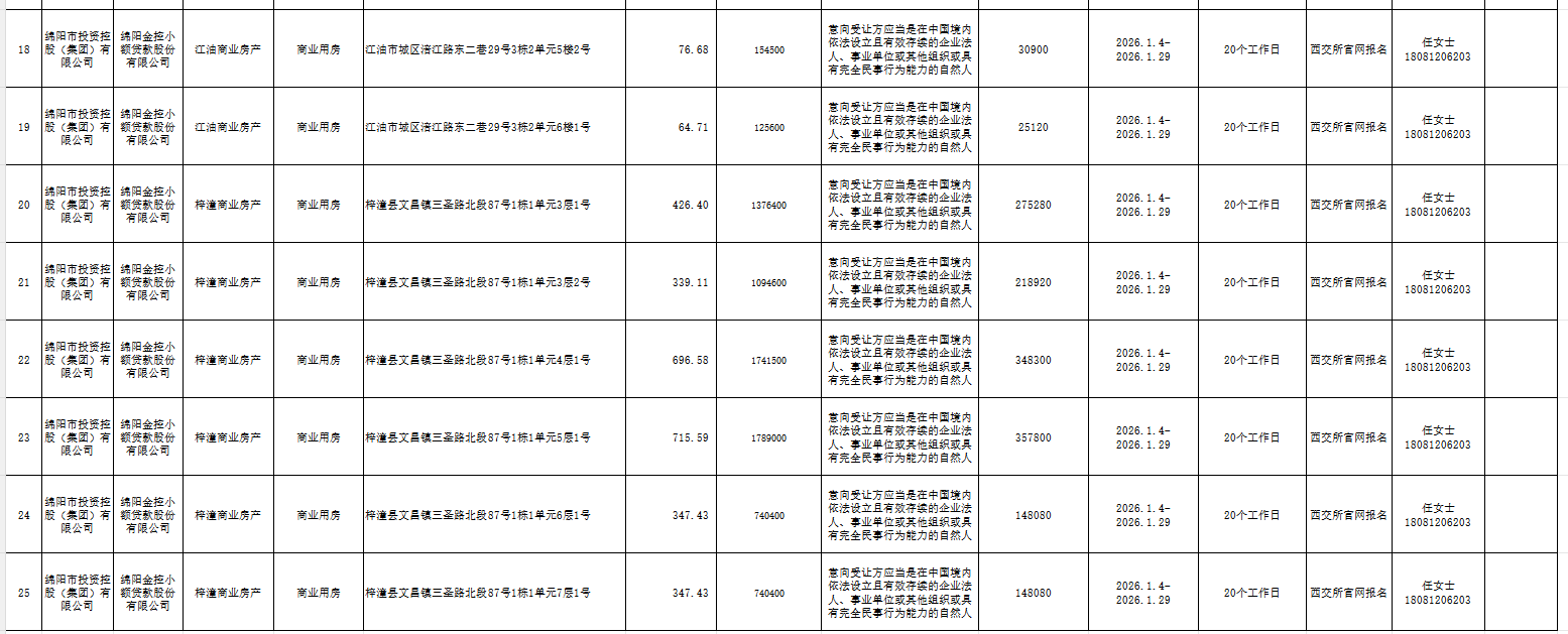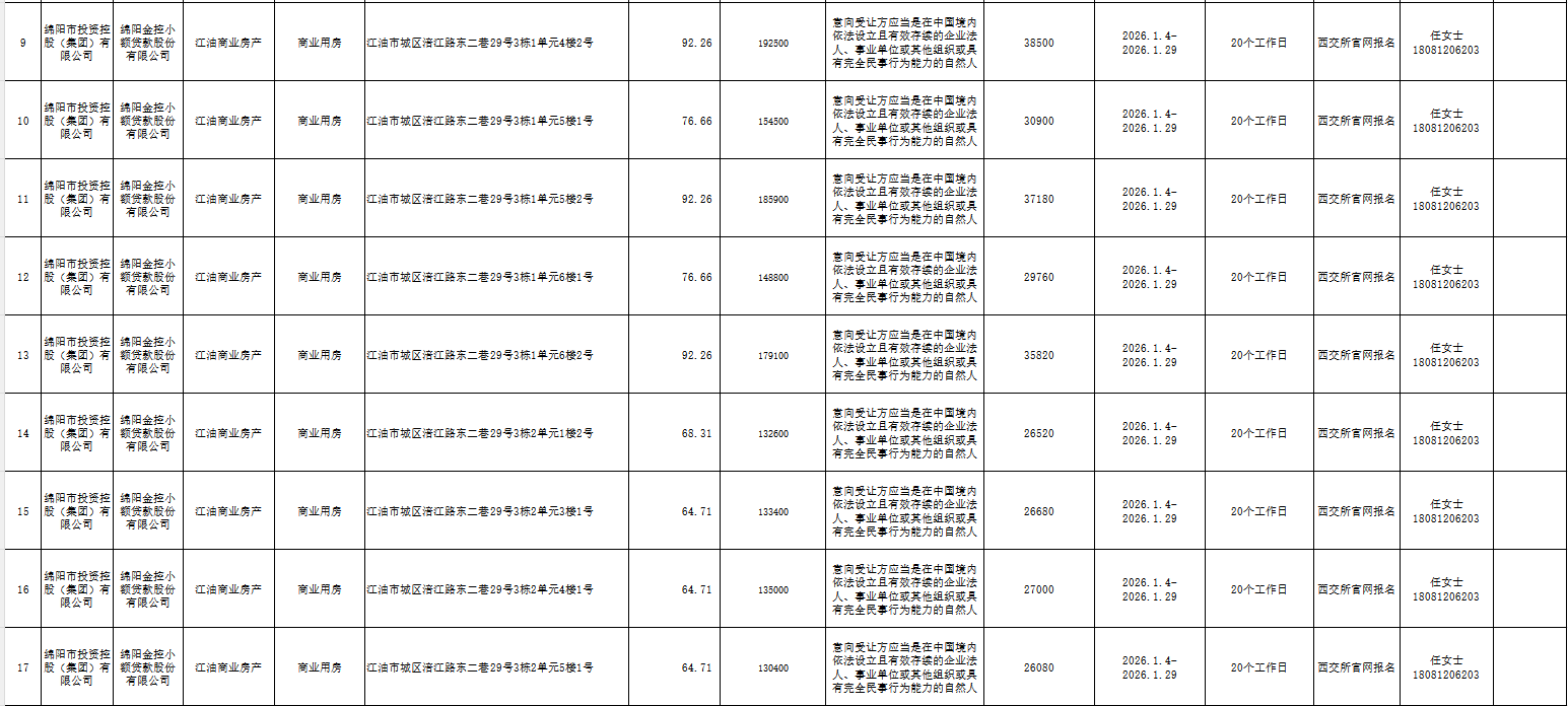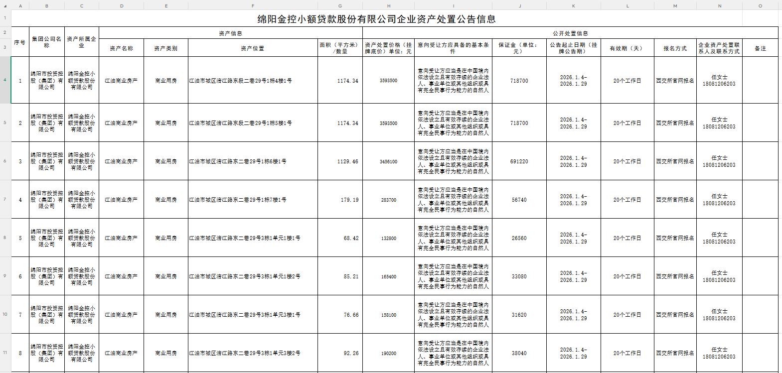 绵阳金控小额贷款股份有限公司企业资产处置公告信息