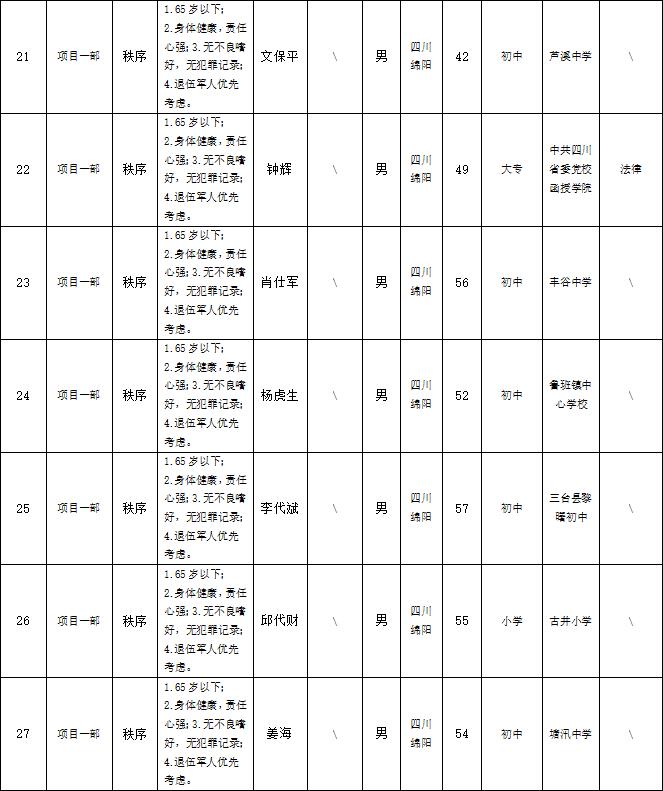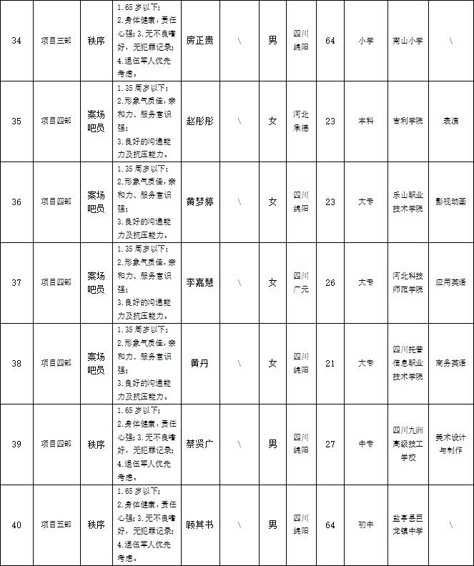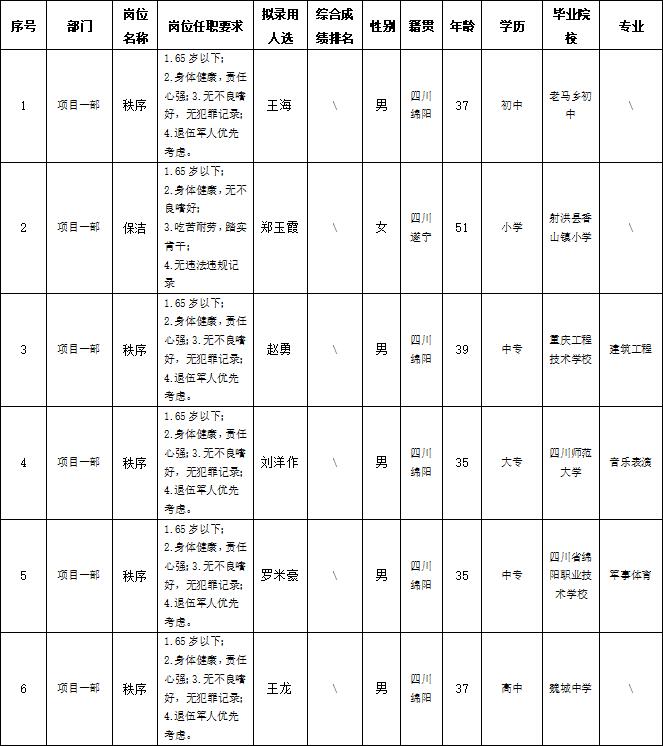 根据绵阳市康来物业服务有限公司发布的招聘公告及招聘相关规定,经面试等程序,拟录用以下人员到各项目部工作,现予以公示,具体情况如下:
