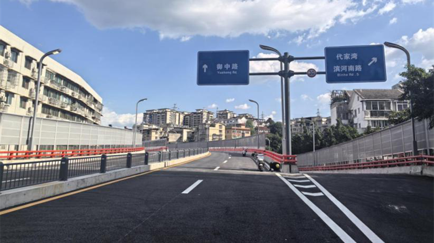 创业大道南延线工程作为备受瞩目的重大民生工程,起点为既有的创业大道,向南延伸,穿越绵中东侧后山,与既建铁路跨线桥相衔接,并对三汇立交进行改造升级,新建御营大桥至御中路高架桥。这条全长约4.5公里的交通动脉,连接着科技创新区与涪城中心区主要路网,成为贯通城市重要片区的黄金纽带,本次实现通车条件的御营片区路网约1430米,实现了临园干道与御营片区的交通转换。