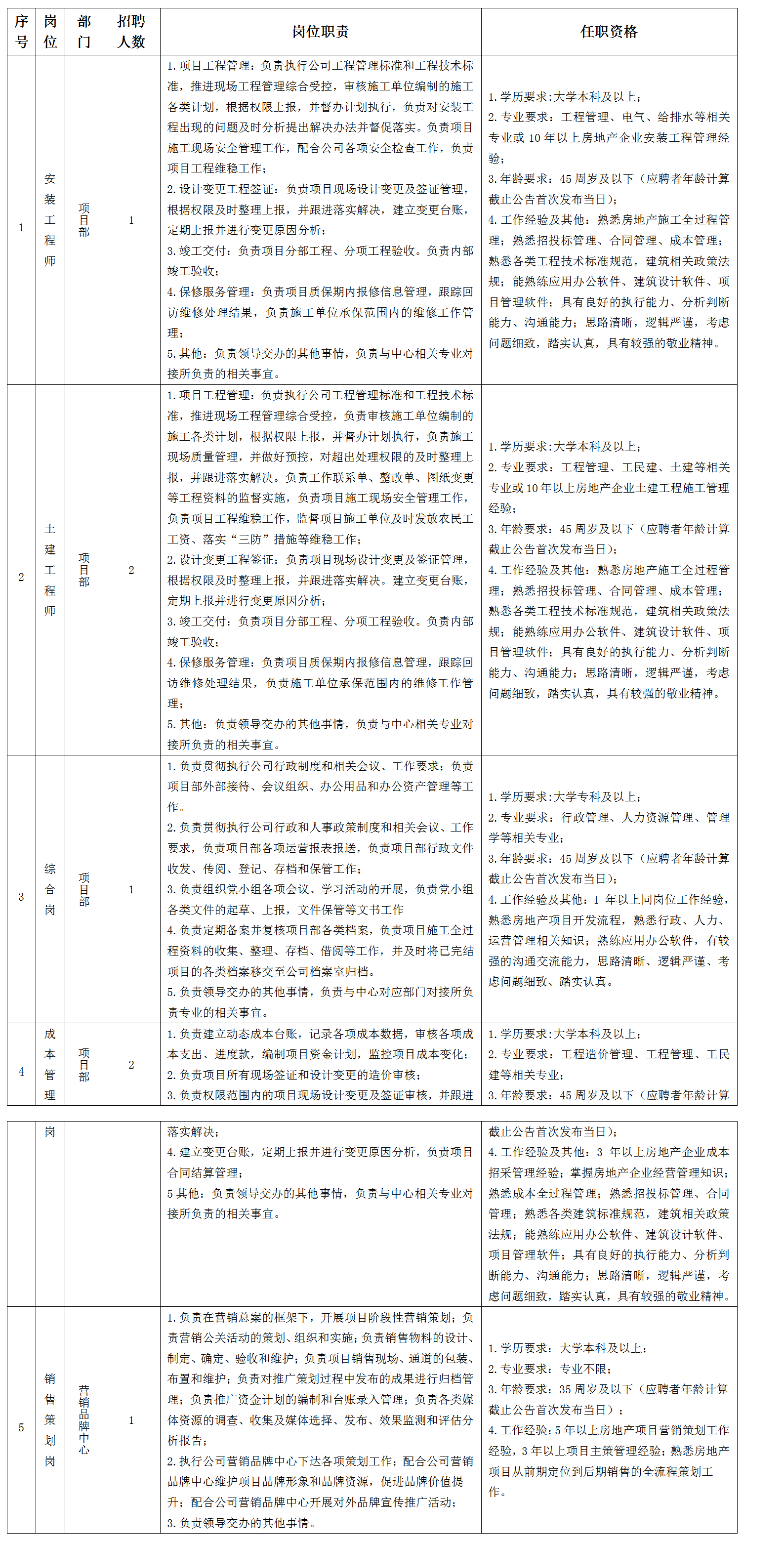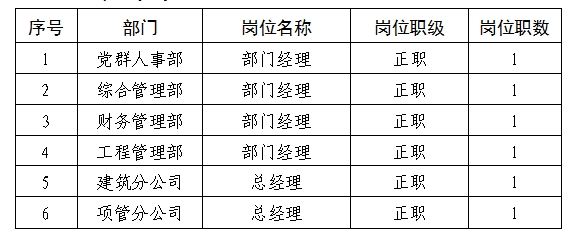 经公司研究决定,拟按照公开、公平、公正、择优原则,以项目聘用方式,面向社会招聘10名现场管理人员及5名土建工程造价管理人员。其职能职责及任职条件如下: